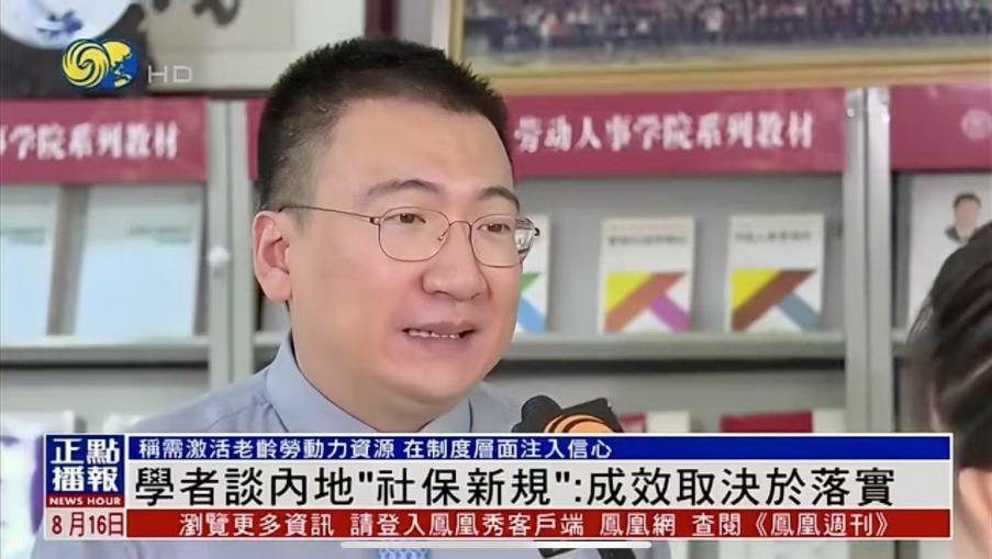 2025年8月16日,劳动人事学院劳动关系系主任张皓副教授接受凤凰卫视采访,就最高人民法院近期发布的《最高人民法院关于审理劳动争议案件适用法律问题的解释(二)》进行了解读。该司法解释聚焦社会保险缴纳等热点议题,引发社会广泛关注。张皓就司法解释的制定初衷、激活和保护超龄劳动力资源的必要性,以及未来制度建设的重点着力方向等问题发表了意见。