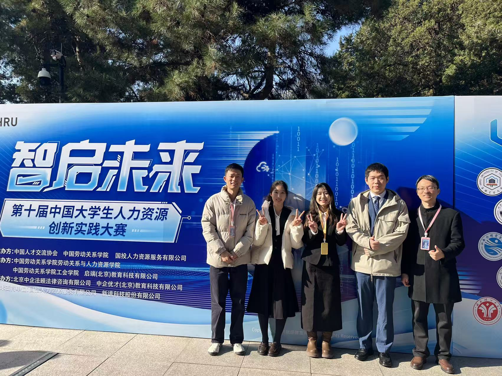 此前在京津冀晋蒙地区赛中,我院本硕队伍已双双夺得团体特等奖(插入地区赛新闻报道链接:https://mp.weixin.qq.com/s/vRSGxvgbapOzHl4k9kHkJA)。载誉归来后,同学们并未停下脚步,而是以更高标准投入新一轮备赛。面对总决赛时间紧、任务重的挑战,全体队员坚持以赛带练、以赛促学,在完成日常学业的同时,主动拓展知识边界,反复打磨专业细节,不断深化对人力资源理论与实务的理解。大家互相鼓励、共同研讨,在持续探索与自我突破中,建立起深厚的团队默契与专业自信,最终以充分的准备和昂扬的斗志奔赴全国总决赛的舞台。