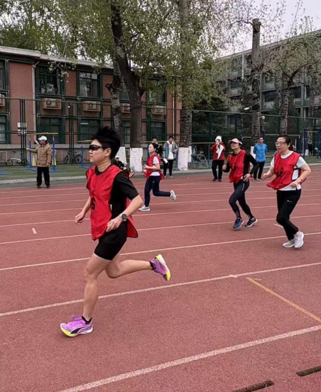 刘雯老师站上女子组100米赛道,发令枪响后如离弦之箭全力冲秒刺,步伐矫健、动作利落,短短百米尽显速度与激情,凭借17.84秒的成绩赢得第三名。