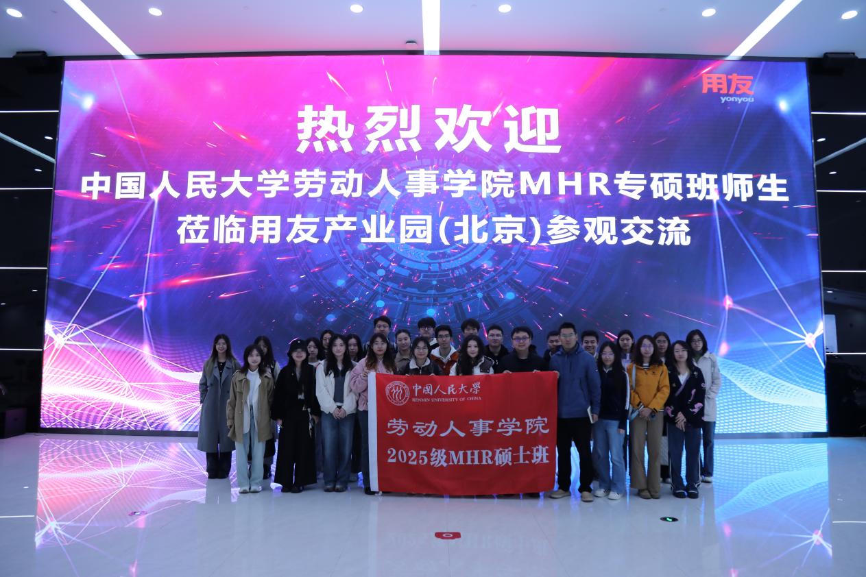 近期,中国人民大学劳动人事学院专业学位硕士项目中心组织2025级MHR专硕班师生先后走进用友网络科技股份有限公司(简称“用友”)与北京国际人力资本集团股份有限公司(简称“FESCO”),开展两场高质量名企参访活动。两场参访分别作为专硕培养方案中“咨询服务中心”课程与《人力资本服务理论与应用》课程的重要实践环节,助力同学们将课堂理论与行业实践深度融合,近距离感受数智化浪潮下企业管理与人力资源服务的创新方向。
