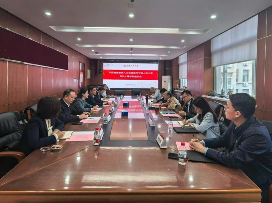 2025年10月14日下午,中国人民大学劳动人事学院与中国融通集团人力资源部(党组组织部)在求是楼347会议室举行校企合作座谈会。双方围绕实习基地建设、课题联合攻关、双向授课以及企业人力资源服务创新等议题展开深入交流。