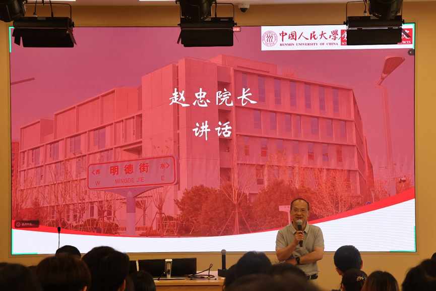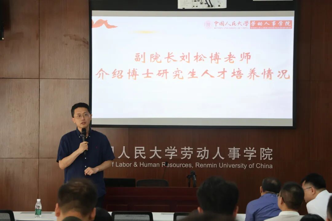 副院长刘松博首先向来自五湖四海的全体硕士新生表示热烈欢迎,随后以授课老师、学院领导、年长师兄的三重身份向新生们介绍了硕士研究生的培养情况。作为授课老师,他提到本学期将与新生同学们共同度过两门课程,期待未来在专业层面的沟通和探讨。作为学院领导,他着重介绍了学院之后学术型硕士培养模式的变化并对经历了考试科目调整挑战的专业硕士同学表示高度认可。作为年长师兄,他表达了对新生同学们蓬勃朝气的高度赞扬,鼓励同学们与人大新校区、劳动人事学院共同创造历史,期待同学们在未来的大变局中、在新校园这片沃土上成长出期待的模样。