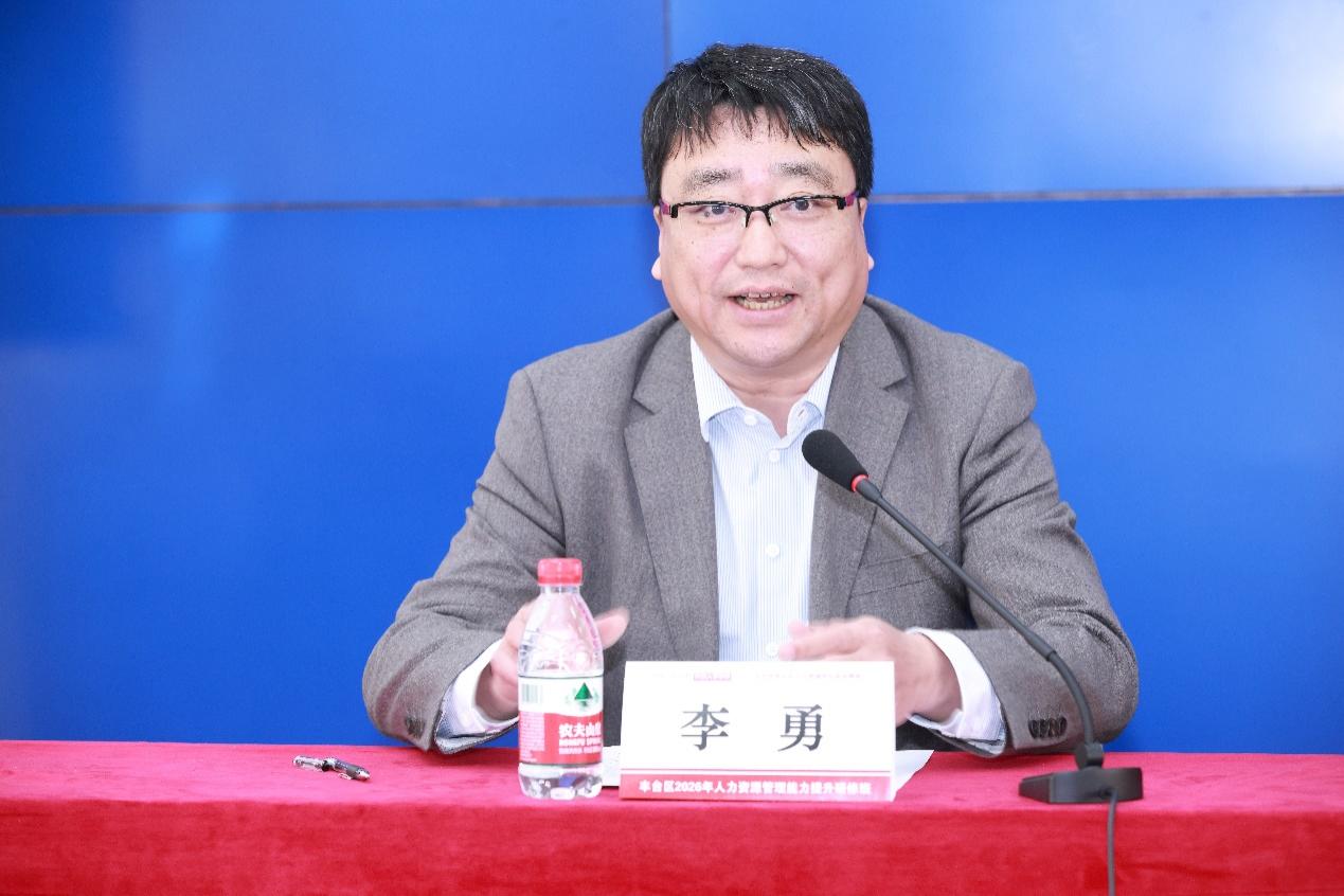 李世琪局长代表丰台区人力资源和社会保障局作开班动员讲话,向中国人民大学及劳动人事学院对本次培训的大力支持表示诚挚感谢,对这期培训班的目的意义作了全面的阐述,并对参训学员提出三点希望。李世琪局长表示,本期研修班是北京丰台人力资源促进会成立以来举办的首次大型活动,旨在贯彻落实人才强区战略和“投资于人”理念,借助人大劳人院的顶尖师资与学术优势,帮助学员开阔视野、迭代理念、提升本领,为丰台高质量发展激发人才动能。李世琪局长希冀学员们:向高处立,在学深悟透中夯实专业根基;往宽处行,在跨界交流中激荡创新活水;从严处求,在严谨自律中涵养优良学风。