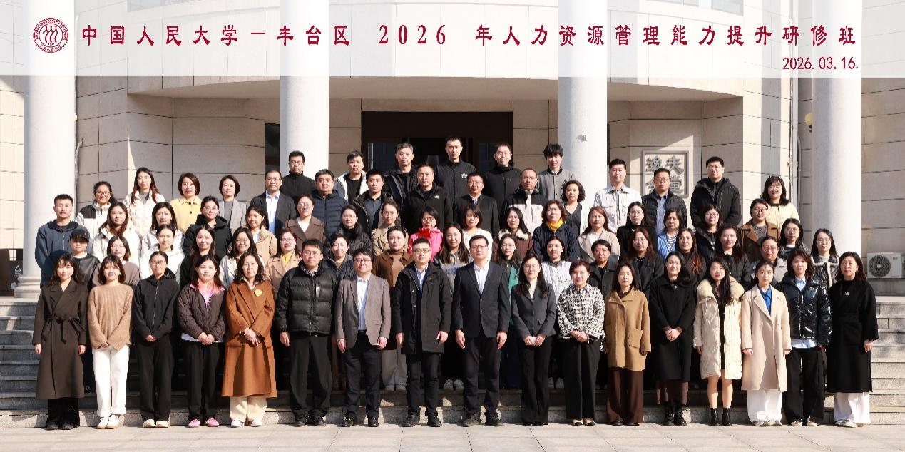 2026年3月16日上午,中国人民大学劳动人事学院承办的丰台区2026年人力资源管理能力提升研修班开班典礼在求是楼440报告厅顺利举行,来自丰台区41家企业的74名学员参加本次培训。丰台区政协副主席(不驻会)、区人力资源和社会保障局局长李世琪,中国人民大学劳动人事学院副院长胡涛出席开班仪式。开班典礼由北京丰台国际人才发展集团有限公司党总支书记、董事长李勇主持。
