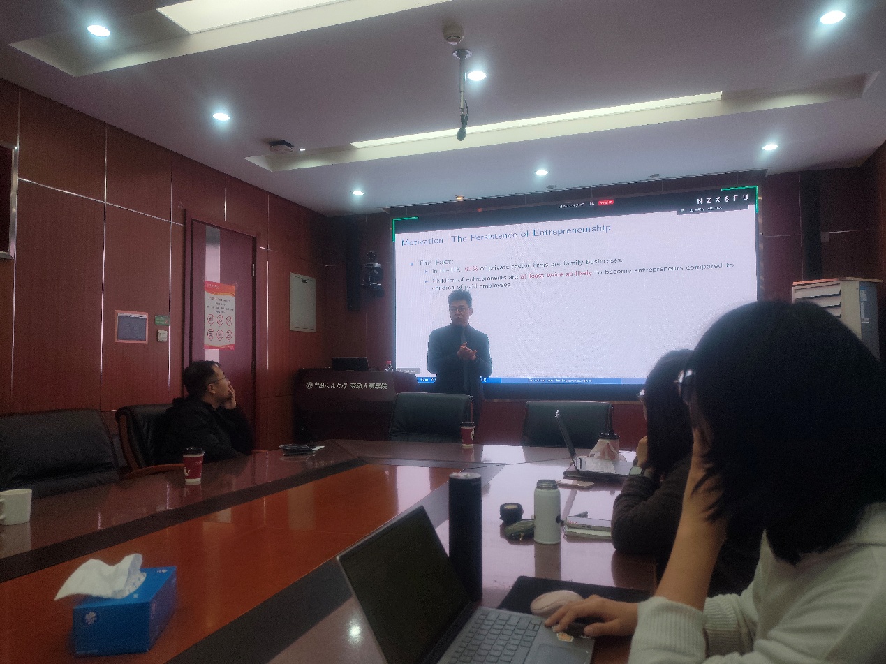 2025年12月4日上午,由劳动人事学院主办,劳动经济系和中国就业研究所承办的“劳动经济学双周论坛”第227期讲座在求是楼347会议室成功举办。来自剑桥大学的章维龙副教授分享了主题为“Genetics and Entrepreneurship: An Intergenerational Study”的研究。本次论坛由劳动人事学院刘相波教授主持,劳动人事学院赵丽秋教授、邹先强副教授、陈泽阳讲师以及其他校内外师生参与了此次讲座。